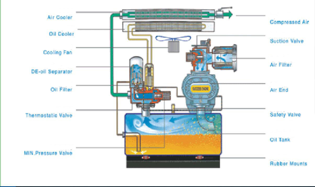 All basic knowledge of screw air compressor The full name of the air compressor is an air compressor; a machine designed according to the working principle of the rotation of the twin screw (also called Yin and Yang rotor) to change the volume of the gas, it can suck in natural air and then complete the work through several internal processes. To discharge compressed air that meets pressure requirements, this machine is called a screw air compressor.The core problem of compressor oper