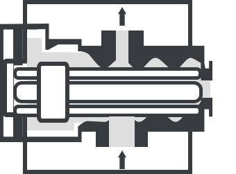 When the volume of the pump chamber is increased (as the diaphragm moves up), the pressure drops. So, the fluid is drawn into the chamber. As the diaphragm moves down and volume decreases, the chamber pressure increases. Then, the drawn fluid is pushed out. Finally, the diaphragm, which moves again upwards, draws fluid into the chamber and completes the cycle. This procedure is similar to what occurs in an internal combustion engine.